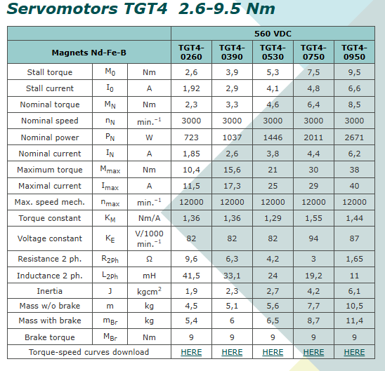 Servomotors TGT4 2.6-9.5 Nm