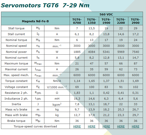 Servomotors TGT6 7-29 Nm