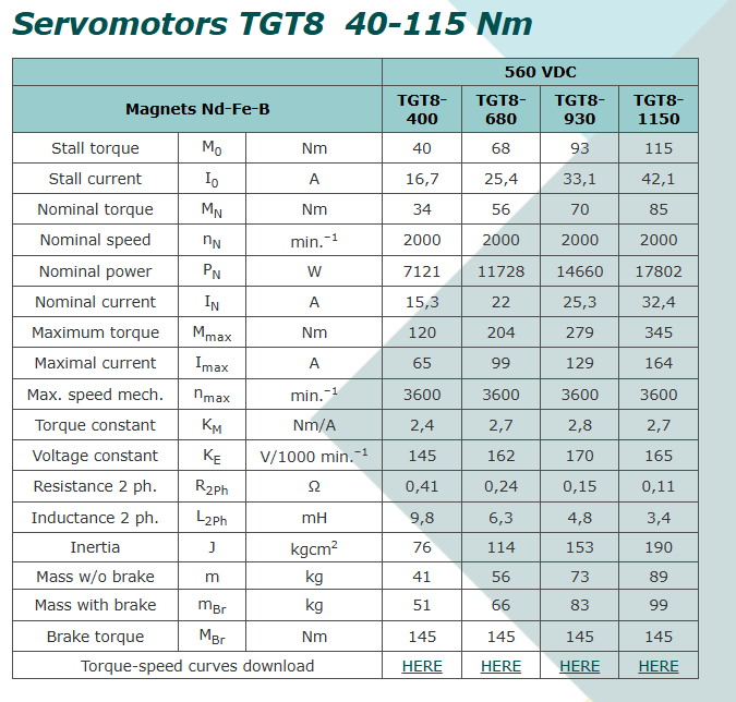 Servomotors TGT8 40-115 Nm